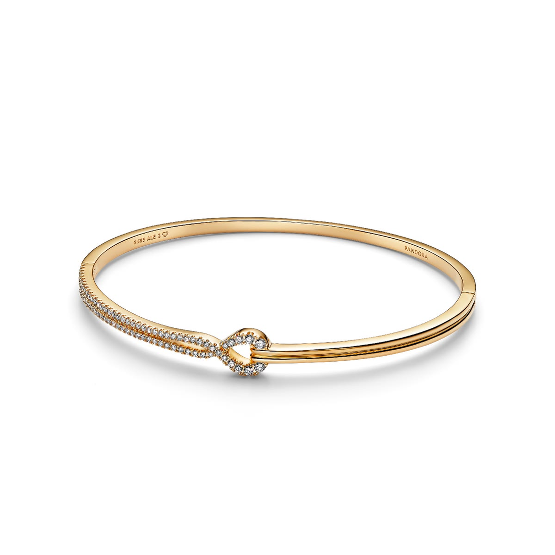 Gold Infinity Knot Bangle Bracelet – Pavé CZ Knot & Line Sterling Silver