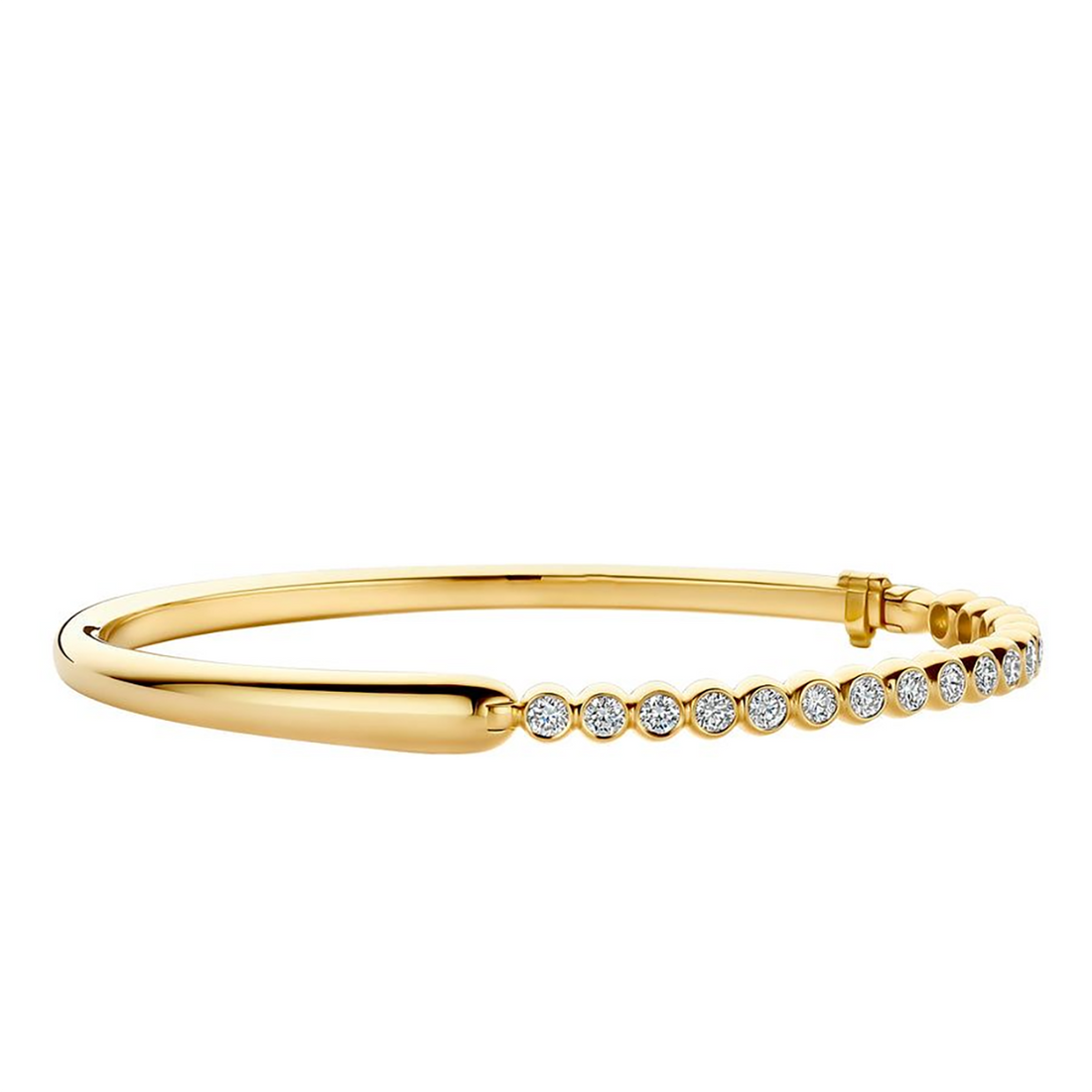 Gold Tennis Bangle Bracelet – Full CZ Pavé Line with Smooth Gold Bar