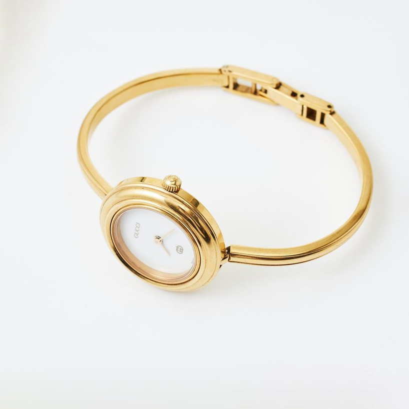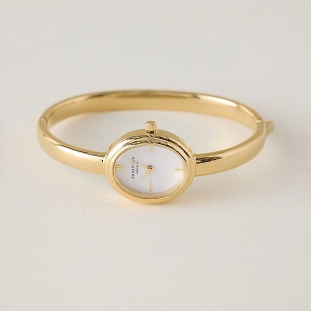 Gold Oval Bangle Watch – Minimalist White Dial Bracelet Timepiece
