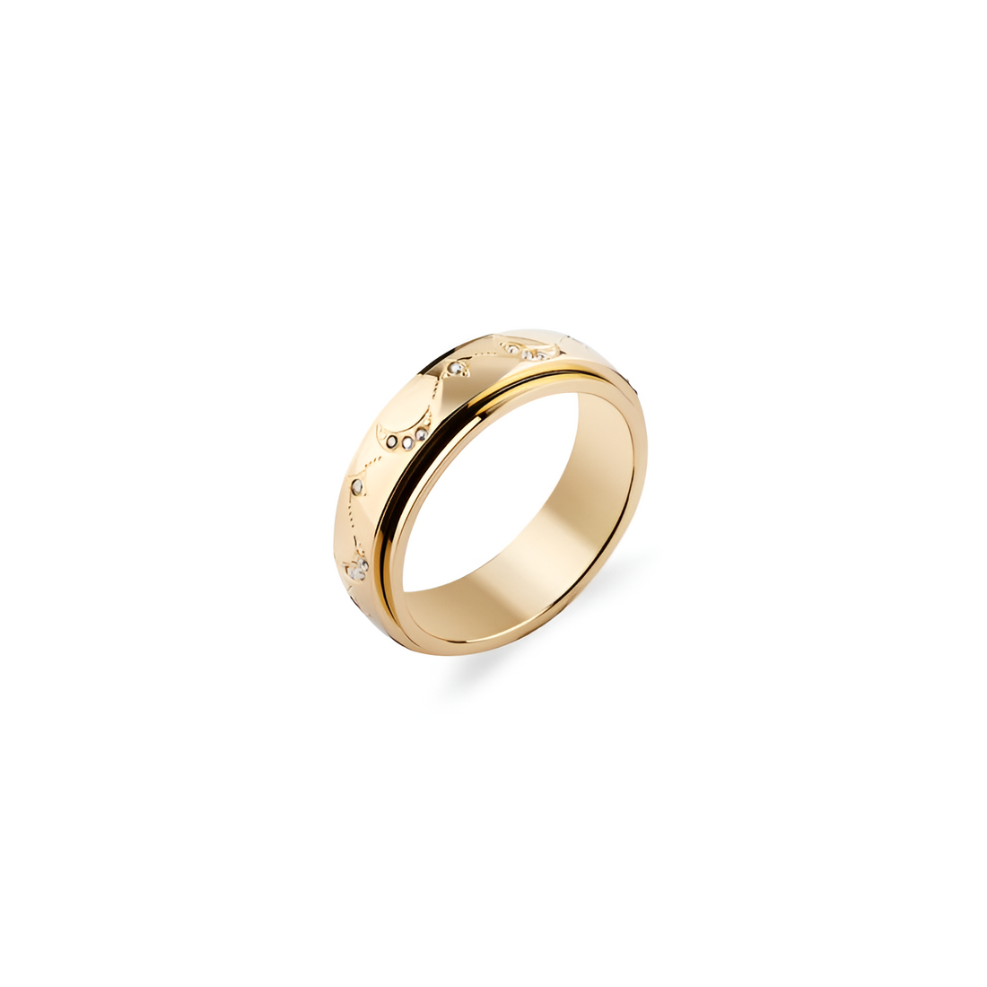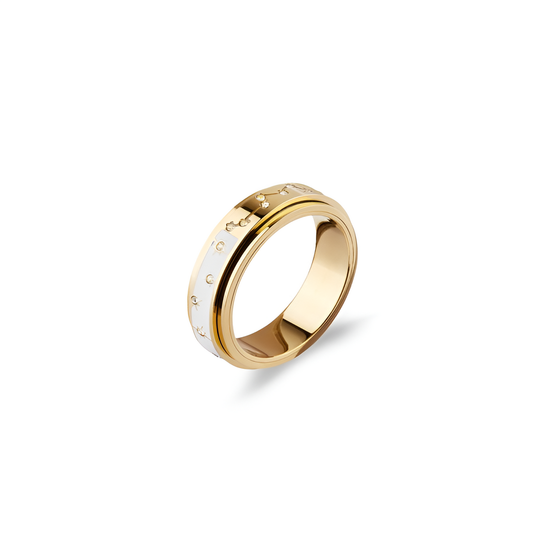 Gold Spinner Zodiac Constellation Ring with CZ Diamonds & Enamel Band
