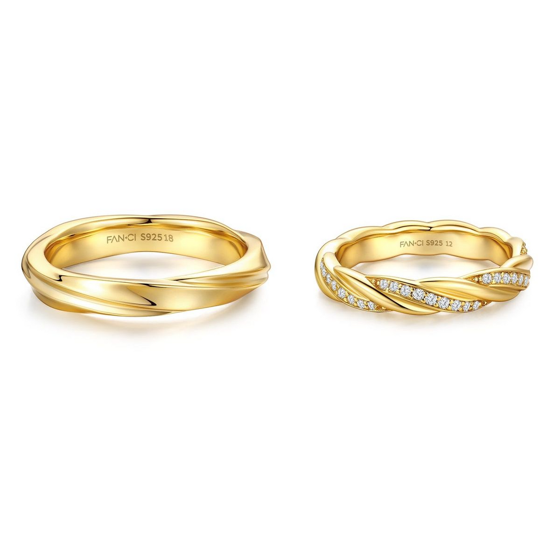 Gold Twisted Infinity Knot Rings Set – Plain & CZ Pavé Sterling Silver Duo